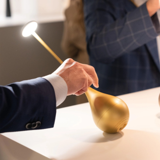 Dondolina to nowoczesna lampa stołowa o smukłej sylwetce, zaprojektowana przez Federico De Majo. Jej minimalistyczny design sprawia, że doskonale komponuje się zarówno w nowoczesnych, jak i klasycznych wnętrzach.