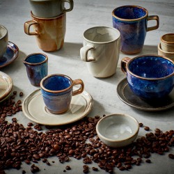 Filiżanka ze spodkiem z kolekcji Escura Cream to połączenie subtelnej formy i rustykalnego charakteru. Porcelana w ciepłym kremowym odcieniu z delikatnym nakrapianym wykończeniem doskonale komponuje się zarówno z tradycyjnymi, jak i nowoczesnymi aranżacjami stołu.