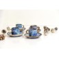 Zdobienie: porcelana szkliwiona reaktywnie, odcienie niebieskiego i granatu z brązowymi granatowymi rantami